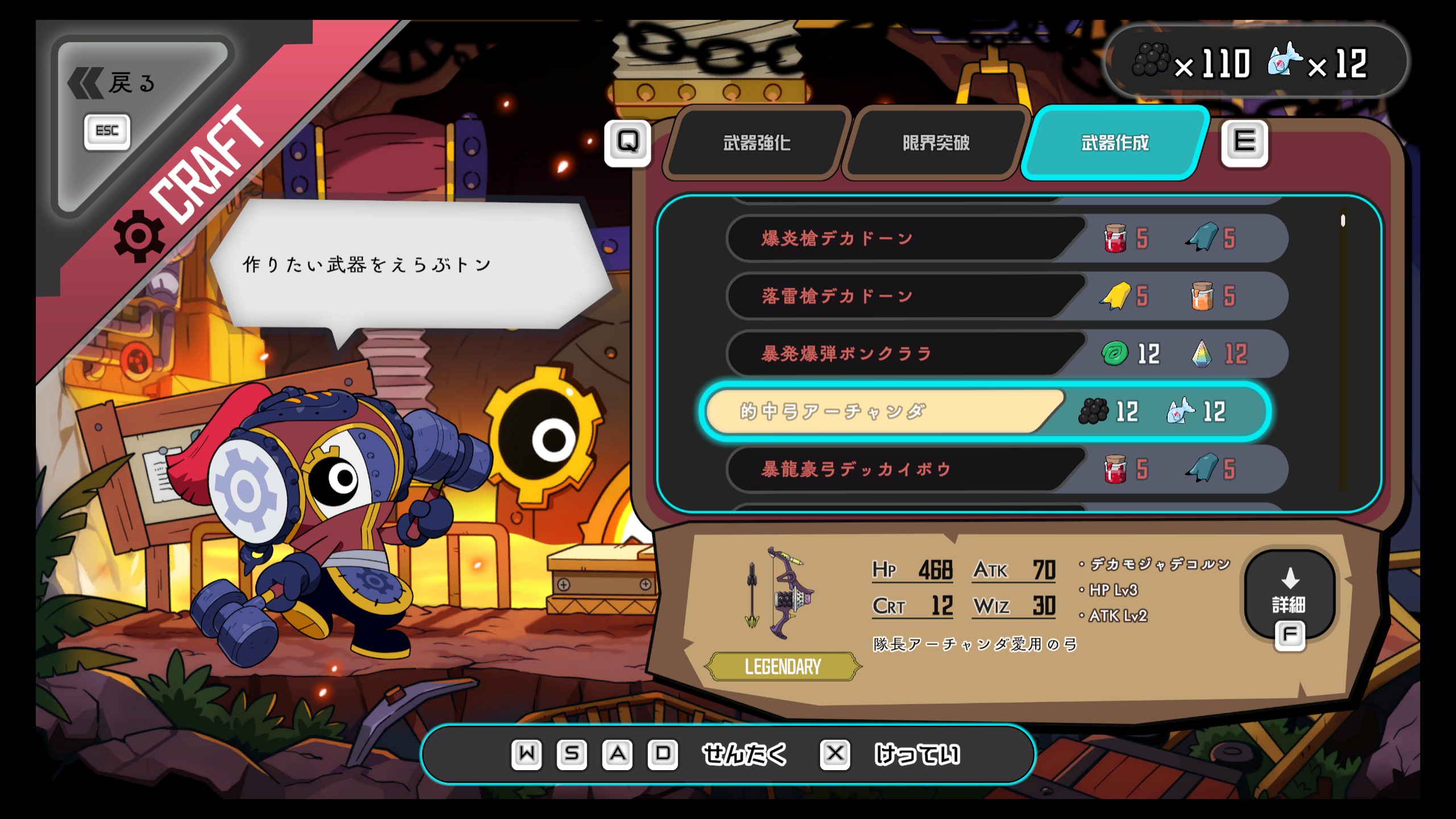 クリアクリンを使うもう片方の武器がショボそうなので作るのは後回しでも良いのですが、コンプリートを目指すなら相当時間掛かりそうです。