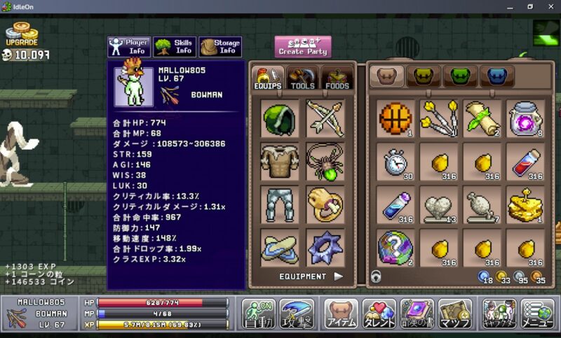 それでも普通のMMOとか、MMOに限らず大半のゲームと比べると放置での稼ぎは大きいと思います。